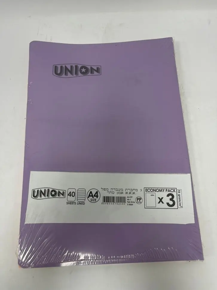 סט של 3 מחברות שורה בגודל A4 מבית Union – פתרון פתרון לתלמידים, סטודנטים ושימוש יומיומי בבית או במשרד.