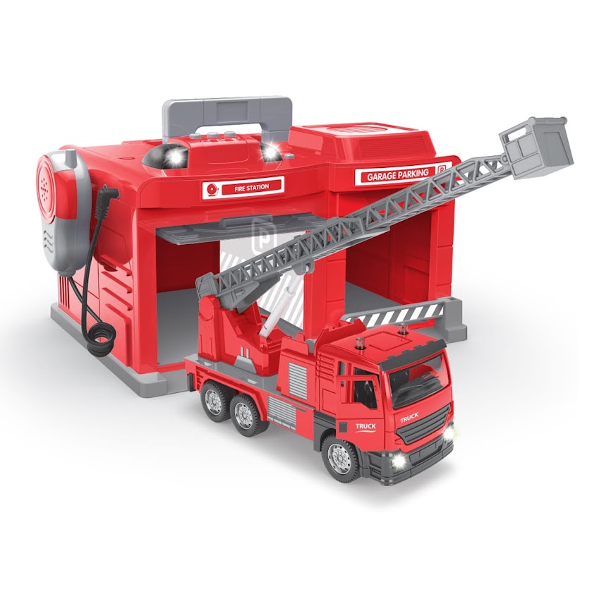 מכבי אש חניון עם אורות וצלילים + רכב + מיקרפון
