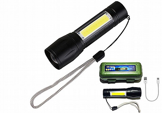פנס לד נטען מתכת שחור שני מצבים 9X2.5 סמ