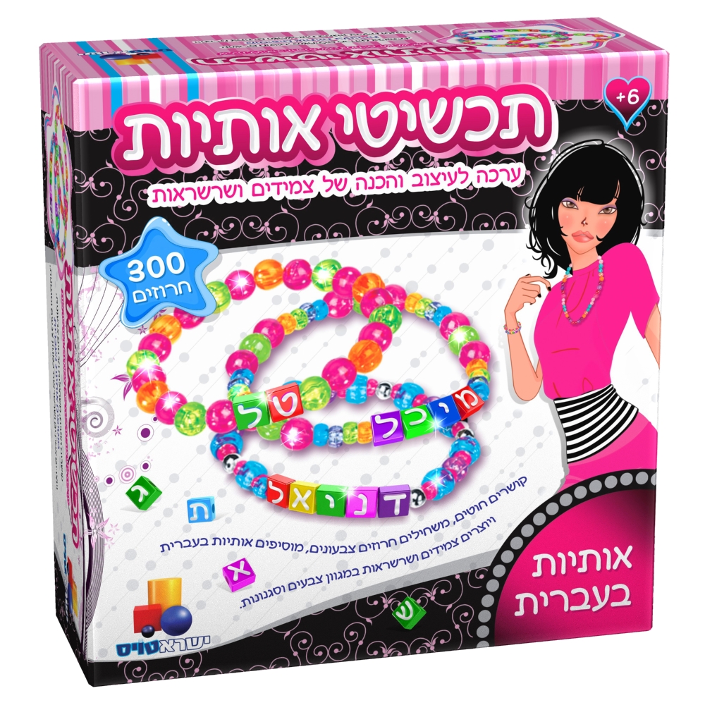 ✅ כוללת חרוזים צבעוניים, אותיות בעברית, חוטים וסוגרים